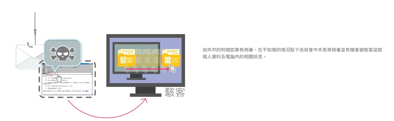 社交工程是一種利用人性的弱點進行詐騙,以達到個人目標的手段。最常利用的工具則是透過電子郵件的方式,誘騙使用者開啟信件或者點擊連結。駭客在這類型的信件中藏有惡意的軟體或連結,使用者如果點擊或開啟之後就讓駭客可以藉此達到操控的目的。