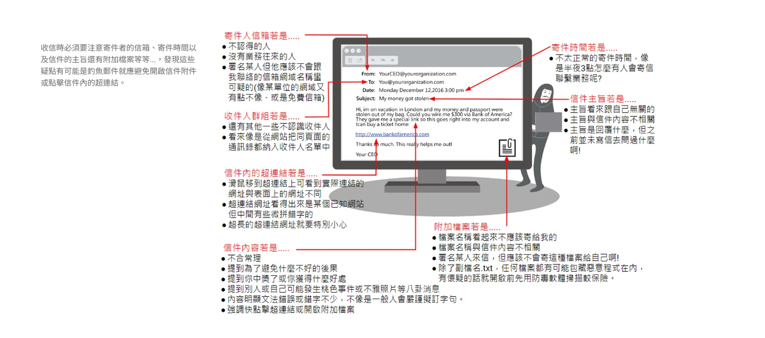 - 寄件者雖然是認識的人, 但是寄件地址跟以往不同, 開啟前先確認
